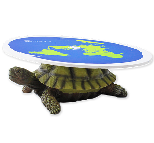 The World Turtle base is the perfect way to showcase your Flat Earth. This hardworking turtle swims his way through the universe with the world on his back.
