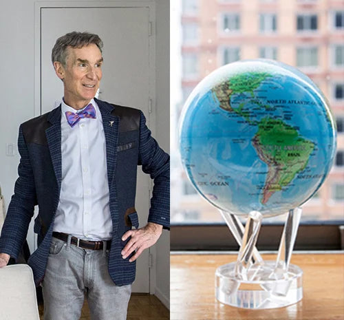 Bill Nye The Science Guy shares his favorite things in his apartment, including his own Relief Map Blue MOVA Globe.