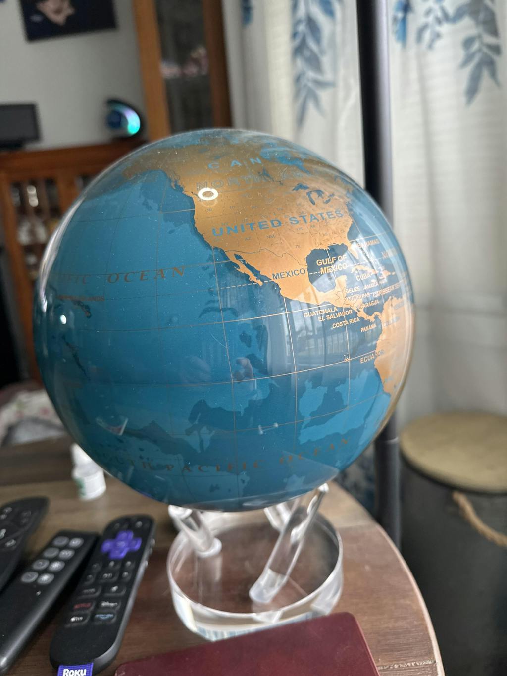 Equal parts vivid and glossy, our Blue and Gold MOVA Globe features shimmering gold landmasses amid a sea of the deepest blue. It's a smooth choice for those who want a modern vibe, as well as purveyors of world maps.